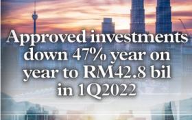 马来西亚在 22 年第 1 季度的批准投资总额为 42.8 令吉,同比下降 47%