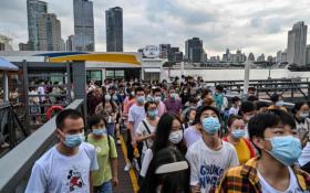 This photo taken on June 28, 2021 shows people exiting a ferry after crossing the Huangpu River in Shanghai. - China was certified as malaria-free on Wednesday by the World Health Organisation, following a 70-year effort to eradicate the mosquito-borne disease. (Photo by Hector RETAMAL / AFP)