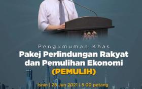 Prime Minister Tan Sri Muhyiddin Yassin unveils the government's latest aid package for the rakyat called Pakej Perlindungan Rakyat dan Pemulihan Ekonomi or Pemulih.