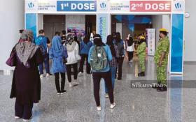 People queuing up at the vaccination centre at the World Trade Centre Kuala Lumpur yesterday. -NSTP/AIZUDDIN SAAD