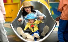 (FILES) This file photo taken on May 11, 2021 shows a mother and her baby playing on a slide at Wukesong shopping district in Beijing. - China has relaxed its family planning policy to allow couples to have three children after a census showed its population is rapidly ageing, state media reported on May 31, 2021, further unwinding four decades of controls in the world's most populous nation which ...