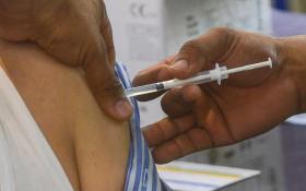 A health worker incoluates a man with a dose of the Sinopharm Covid-19 coronavirus vaccine at a vaccination centre in Karachi on May 6, 2021. -- AFP File Pix