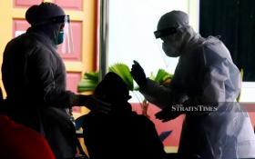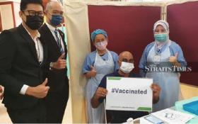 Sabah Journalist Associaton president Datuk Muguntan Vanar receiving his first dose of Coronavac's Sinovac vaccine at the Queen Elizabeth hospital 2. - Picture courtesy of Liaw Sin Kuang