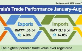Trade Rises 18.6% To RM252.65 Bln In August, Fastest Growth Rate In 22 Months