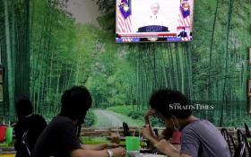 This Sept 23 pic shows customers at a restaurant in Kuala Lumpur, watching the livecast of the Prihatin Supplementary Initiative Package (Kita Prihatin) announcement by Prime Minister Tan Sri Muhyiddin Yassin. -NSTP/SITI NOORFARAH HANAN MAT ZAHIR