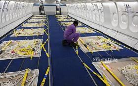 A Sri Lankan Airlines worker gives final touches to an Airbus A330 passenger aircraft, converted into a cargo carrier. AFP photo