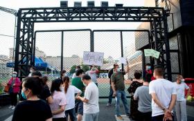 People who visited or live near Xinfadi Market queue for a swab test at Guang'an Sport Center in Beijing. - AFP pic