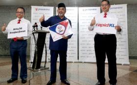 Prasarana Malaysia Bhd chairman Datuk Seri Tajuddin Abdul Rahman (centre), group chief operating officer (operations) Muhammad Nizam Alias (left) and Rapid Rail chief executive officer Abdul Hadi Amran at the launch of the My30 unlimited travel pass at KL Sentral yesterday. PIC BY EIZAIRI SHAMSUDIN