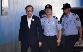 (FILES) Former South Korean president Lee Myung-bak (L) arriving at a court to attend his trial in Seoul. -AFP