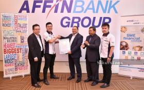 The certificate of recognition was presented to Affin Bank group chief executive officer Kamarul Ariffin Mohd Jamil (centre) by The Malaysia Book of Records general manager Edward Sin.