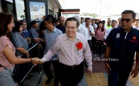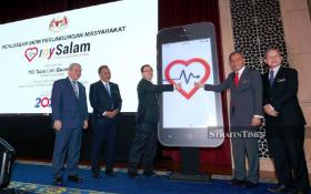 Finance Minister Lim Guan Eng (3rd from left) with Health Minister Datuk Seri Dr. Dzulkefly Ahmad (4th from left) and Deputy Health Minister Dr. Lee Boon Chye (5th from left) gesture during the launch of the mySalam programme expansion, in Putrajaya. -NSTP/Ahmad Irham Mohd Noor.