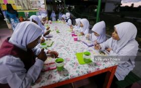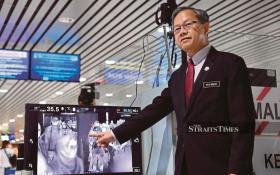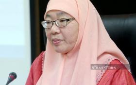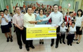 Luyang assemblyman Phoong Jin Zhe accompanied by SK (C) Anglo Chinese headmistress Ong Kooi Huong (centre) presenting a mock cheque to SK (C) Anglo Chinese’s Parents Teachers Association chairman Tan Peng Juan (3rd-left) during the ceremony at SK (C) Anglo Chinese, Luyang in Kota Kinabalu. -NSTP/Malai Rosmah Tuah.
