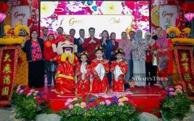 Malaysia Airports Holdings Bhd acting group chief executive officer Datuk Mohd Shukrie Mohd Salleh (seventh from left) with senior management team at the launch of Chinese New Year campaign at KLIA in Sepang, yesterday. NST pix by Luqman Hakim Zubir.